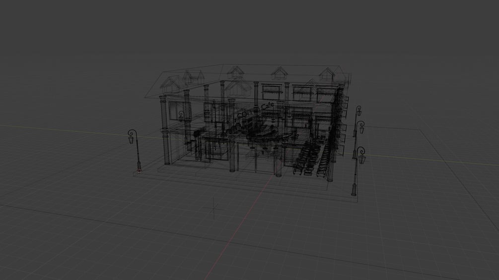 - Detailed Interior – includes chairs, tables, lighting, counters, and décor elements
